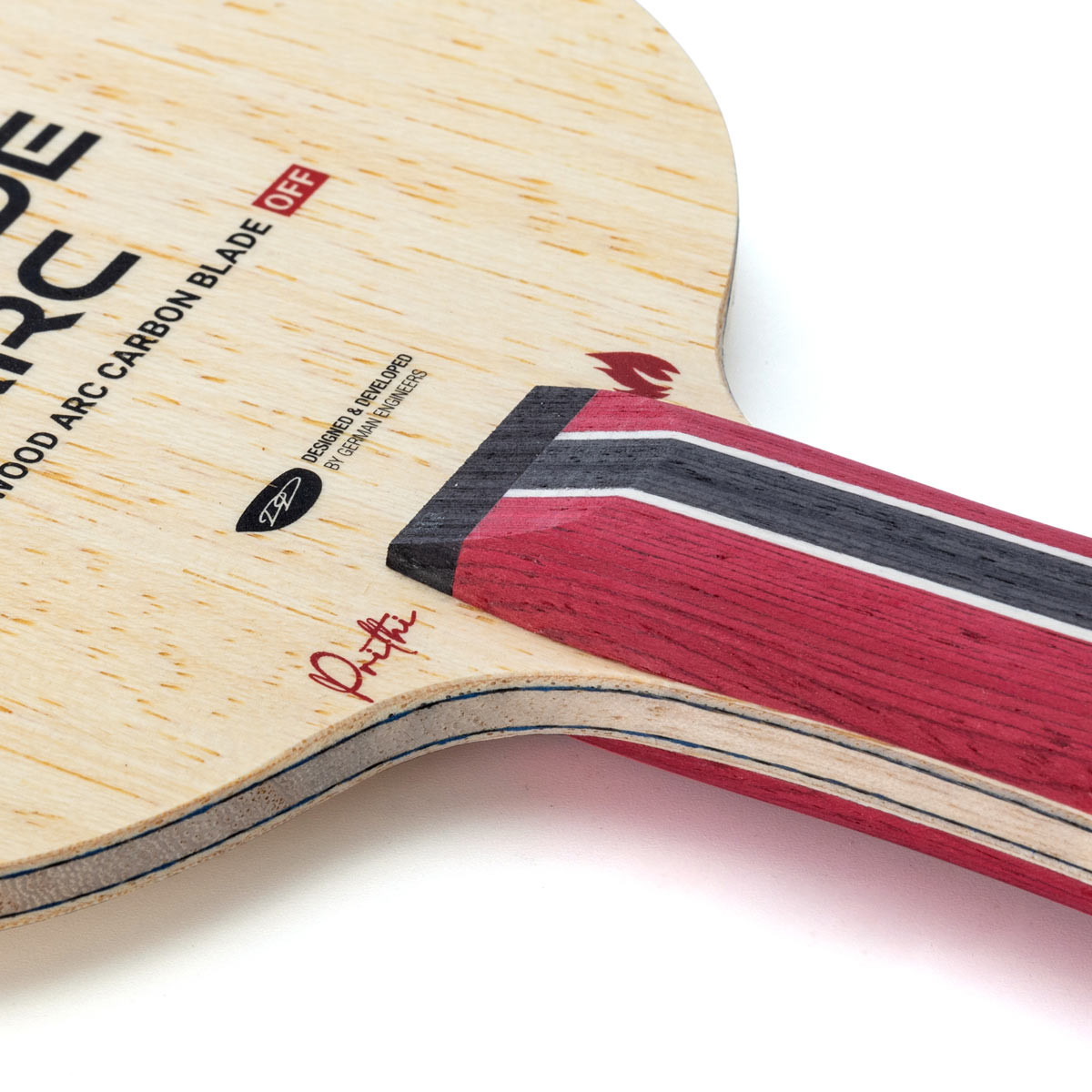 Dank dieser intelligenten Furnierkombination ist das Prithika Pavade ARC Off sowohl für moderne Topspin-Spielerinnen und Spieler am Tisch als auch aus der Halbdistanz ideal geeignet.