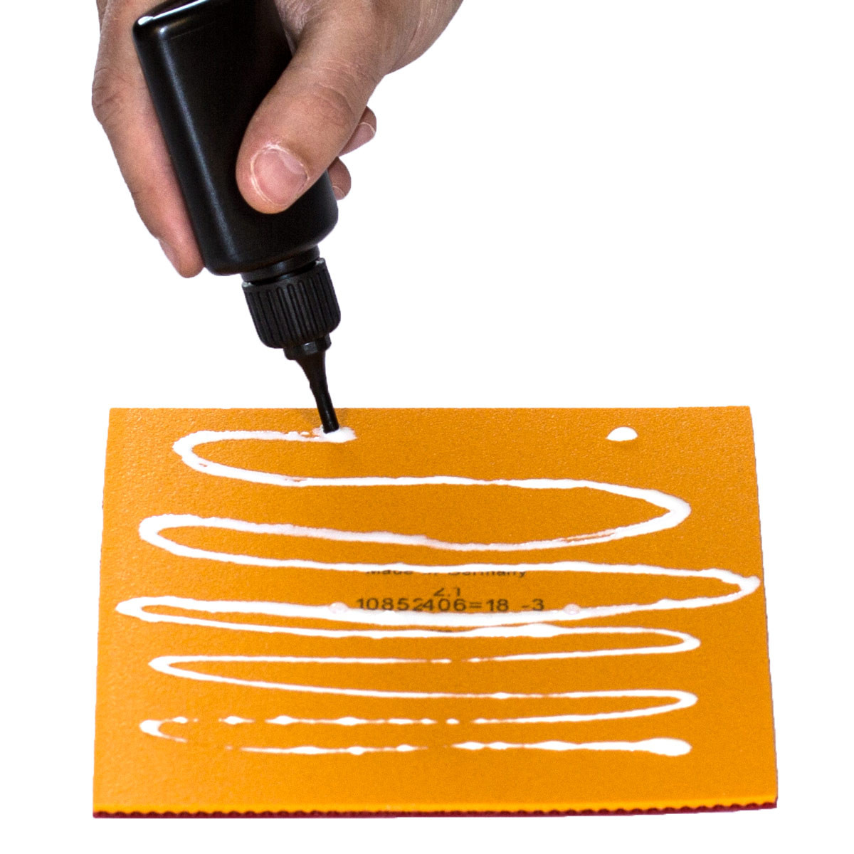 Der Belagkleber GEWO HydroTec (inklusive 15 Schwämme und einer Klammer) besteht zu 100 % aus verflüssigtem Naturkautschuk. Er ist ein lösungsmittelfreier Kleber auf Wasserbasis (HydroTec) und ist völlig frei von organischen Lösungsmitteln (VOC-Free). Die einfache, schnelle und praxisfreundliche Anwendung, u. a. auch speziell für die Verwendung mit großporigen Schwämmen, ermöglicht ein späteres Ablösen der Beläge vom Holz. Zudem ist das Entfernen der Kleberückstände auf Belag und Holz ohne Probleme möglich.