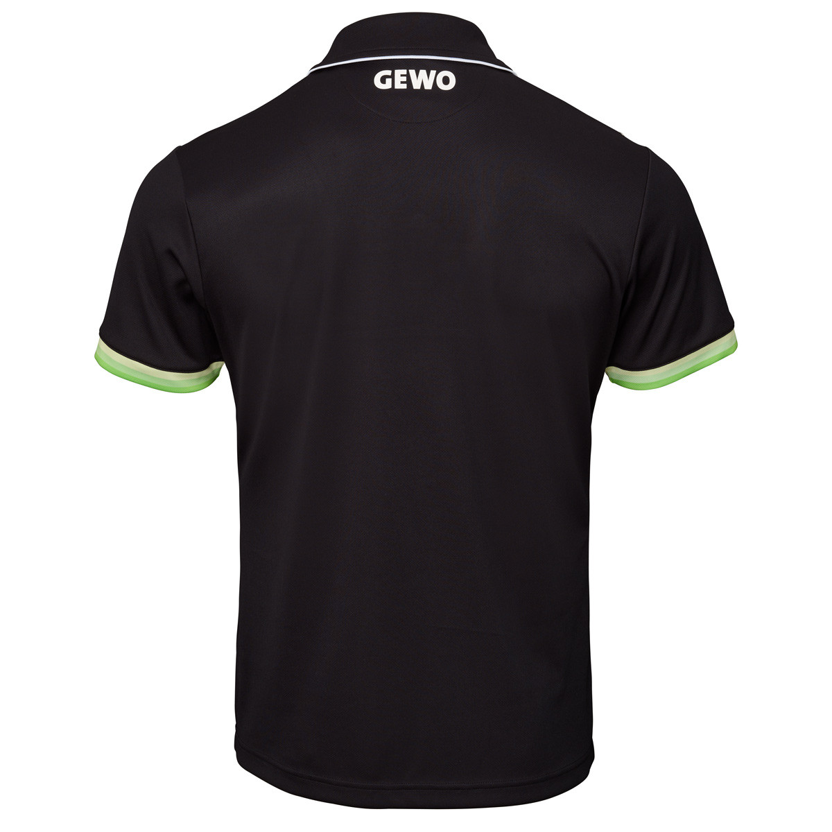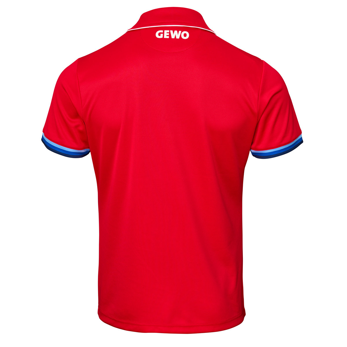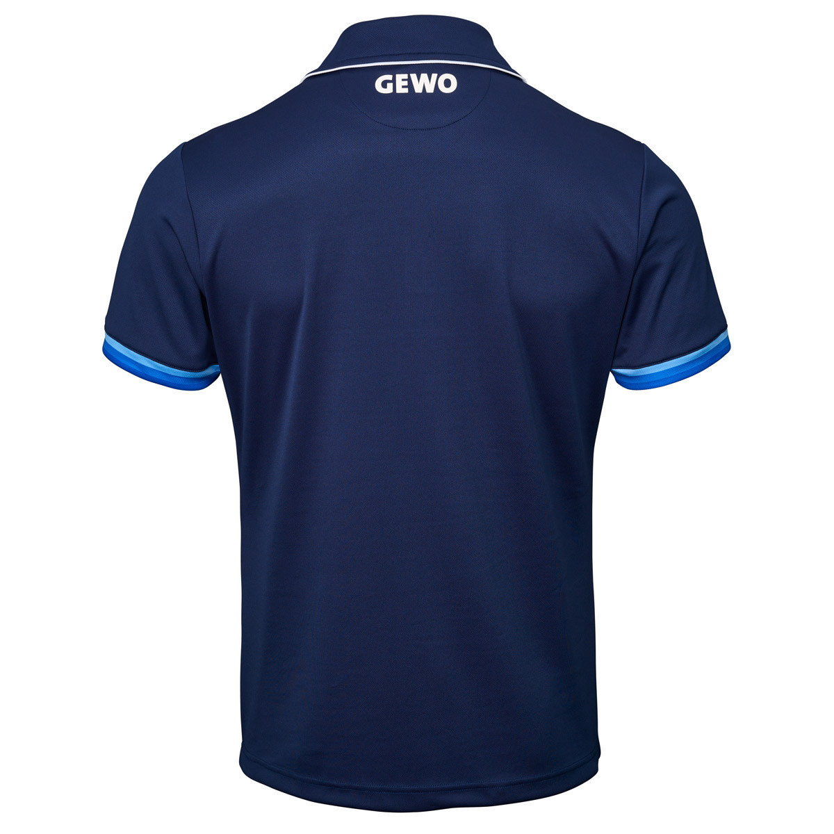 Der klassische Polo-Kragen mit Knopfleiste, ergänzt durch eine feine Kontrastlinie (Piping), sorgt für eine gepflegte, sportliche Optik. Die Ärmel werden durch einen sauberen Abschluss mit streifenbetontem Band ergänzt, das die Linienführung des Poloshirts aufnimmt, während das dezent integrierte GEWO-Logo auf der rechten Brust und im Nackenbereich das Design stimmig abrundet.