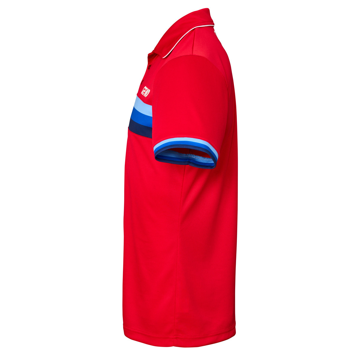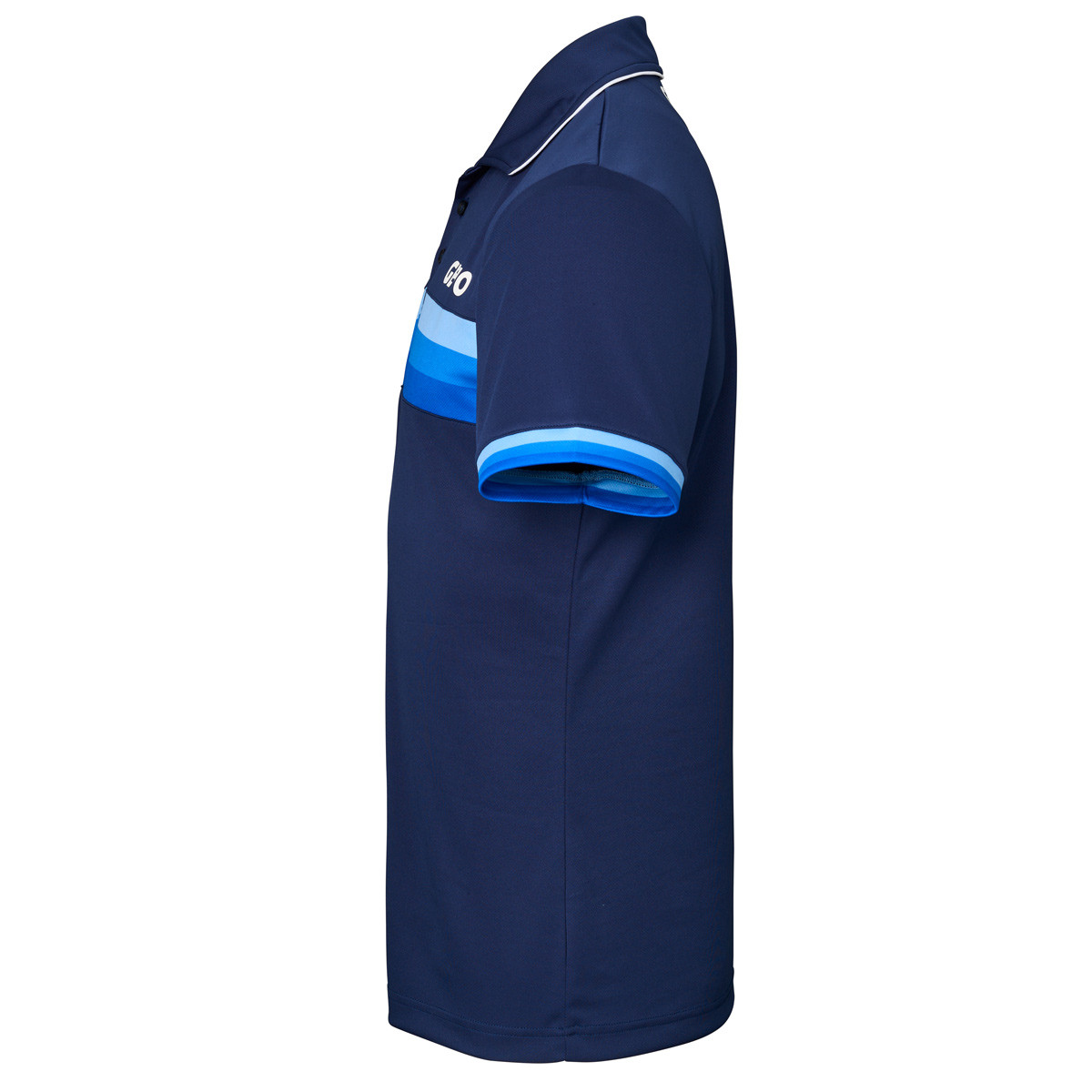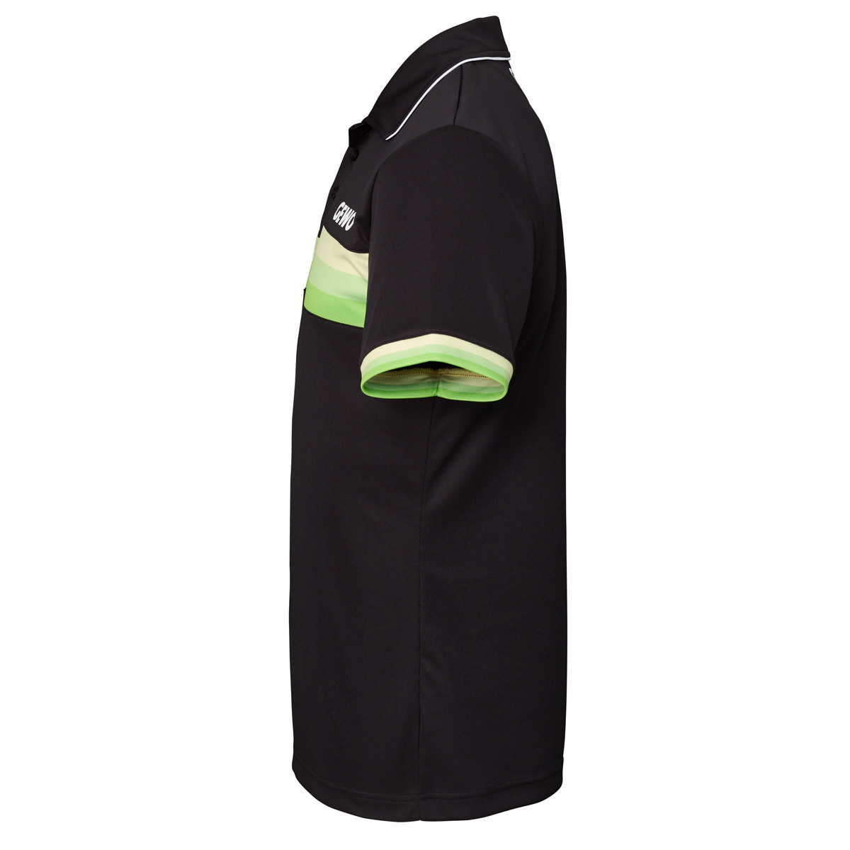 Der klassische Polo-Kragen mit Knopfleiste, ergänzt durch eine feine Kontrastlinie (Piping), sorgt für eine gepflegte, sportliche Optik. Die Ärmel werden durch einen sauberen Abschluss mit streifenbetontem Band ergänzt, das die Linienführung des Poloshirts aufnimmt, während das dezent integrierte GEWO-Logo auf der rechten Brust und im Nackenbereich das Design stimmig abrundet.