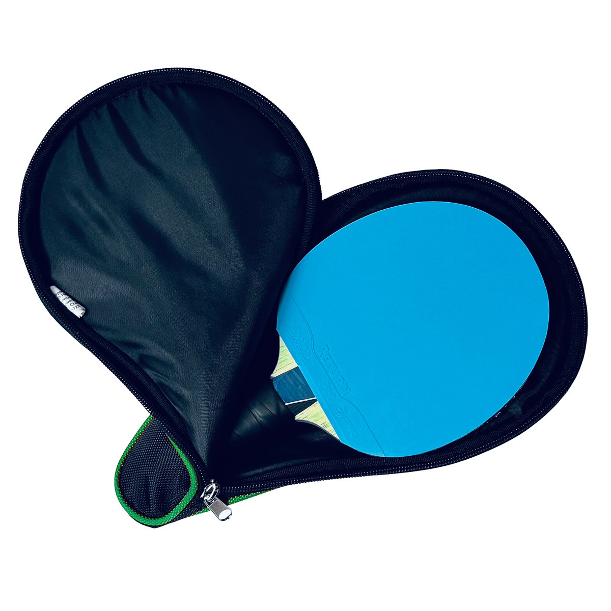Das Material besteht aus robustem 1680D Polyester widerstandsfähig und feuchtigkeitsabweisend. Das Innenfutter sorgt für eine glatte, gepflegte Oberfläche und schützt den Schläger zuverlässig im Inneren der Hülle.