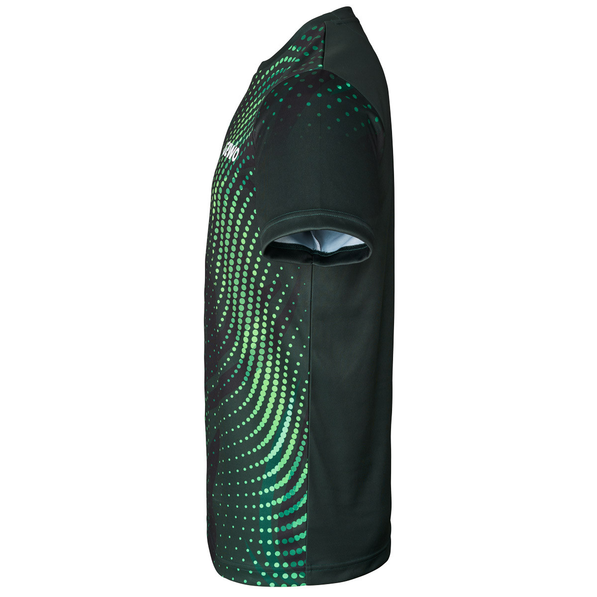 Die ineinanderlaufenden Punktbahnen erzeugen Tiefe und verleihen dem Shirt eine moderne, lebendige Ausstrahlung, ohne überladen zu wirken. Die Ärmel sind bewusst ruhiger gehalten und sorgen für einen klaren Rahmen des Frontdesigns.