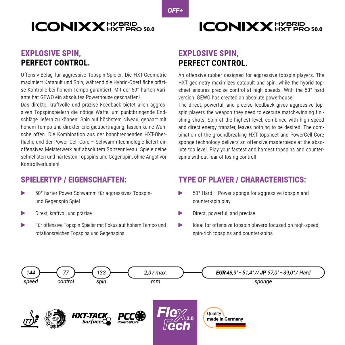 GEWO Belag Iconixx Hybrid HXT Pro 50 - Explosiver Spin, perfekte Kontrolle.