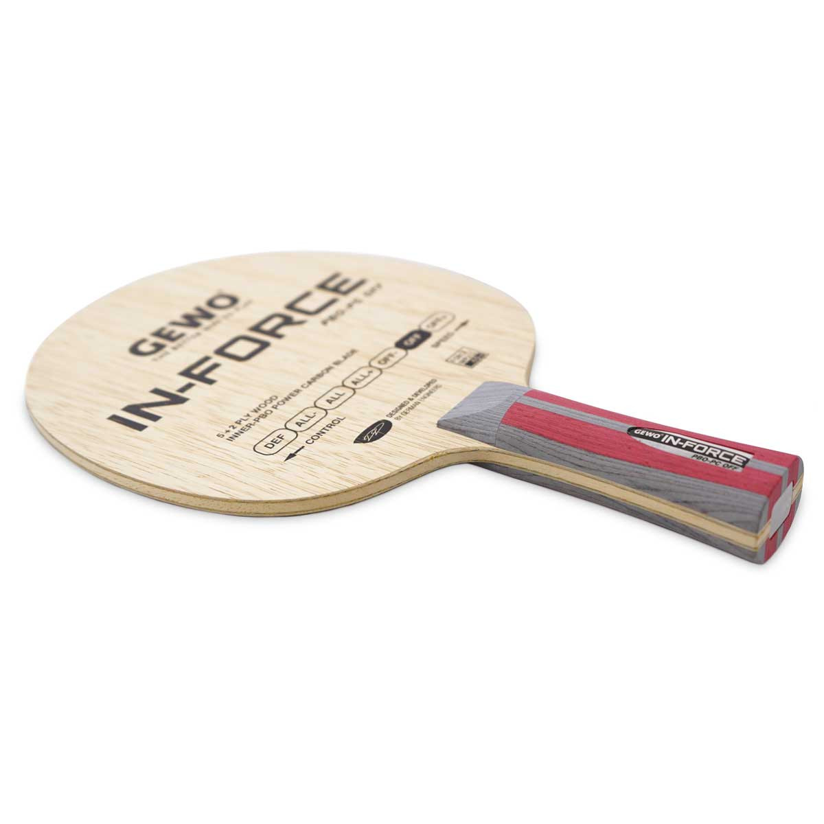 Eine Holzkomposition, die Stabilität, Tempo und Gefühl so miteinander vereint, damit ein harmonisches, eher weiches Spielgefühl entsteht, aber gleichzeitig ausreichend Beschleunigungsreserven für harte Schläge bleiben. Klingt unmöglich? Nicht mit dem GEWO In-Force PBO-PC Off! Die gefühlvolle Verklebung, gepaart mit der Härte der neuen PBO-PC Faser sorgen für ein fantastisches Spielgefühl, welches in puncto Beschleunigung und Kontrolle ein echtes Novum im GEWO Holzsortiment darstellt. Die feinen Limba Außenfurniere sorgen zudem für einen längeren Ballkontakt und hohe Spinwerte.