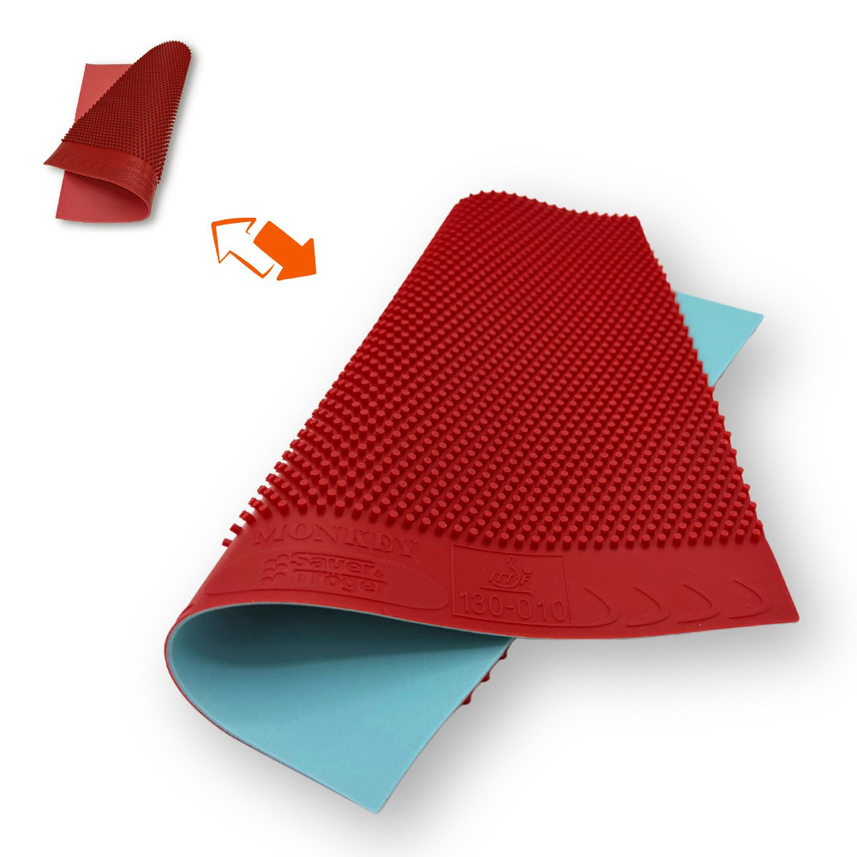 Die 0,6-mm-Version des Monkey wurde mit einem überarbeiteten und verbesserten Schwamm ausgestattet. Ziel dieser Anpassung ist es, die Konstanz im Ballflug zu erhöhen, sodass jeder Ball mit einer möglichst flachen und gleichmäßigen Flugkurve auf die gegnerische Seite zurückkehrt.