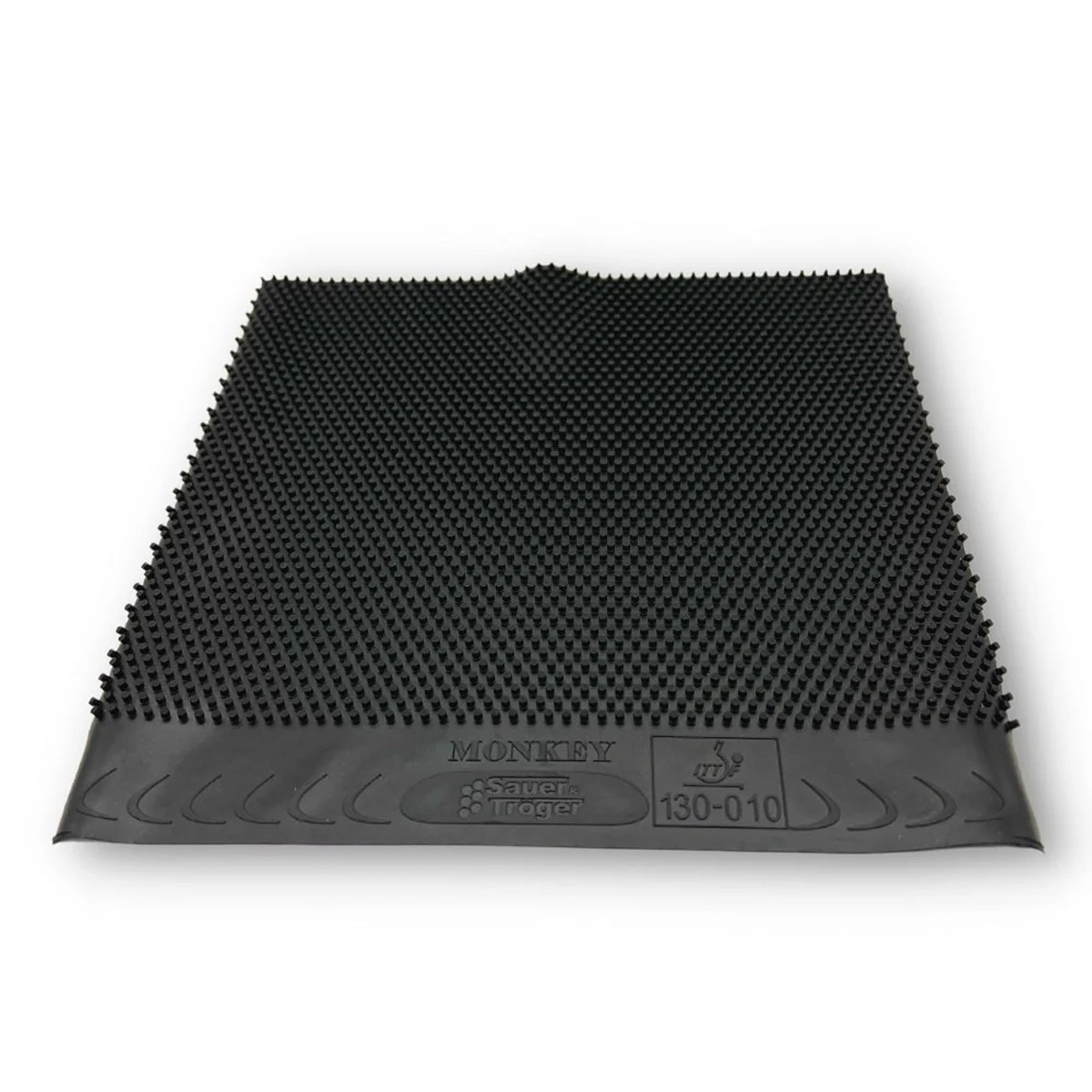 Die Noppen des Langnoppenbelags Monkey haben einen hohen Aspect Ratio und stehen ziemlich weit auseinander. Dies garantiert größtmöglichen Raum zum Einknicken der Noppenköpfe. Die Noppenhälse sind ziemlich glatt, die Köpfe leicht angerauht.